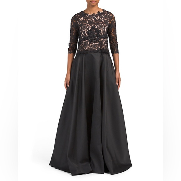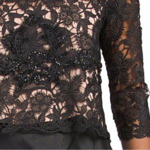 Lotus Threads Black Lace & Beaded 3/4 Sleeve Top & Ball Gown Skirt NWT