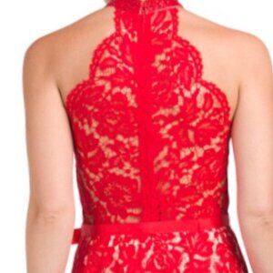 Lotus Threads Floral Lace High Neck Red Embellished Jumpsuit NWT