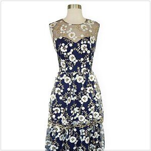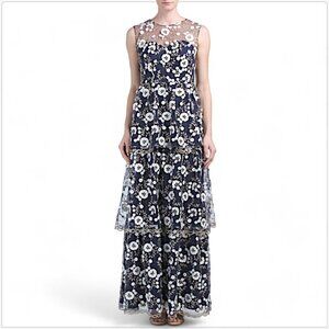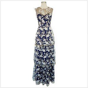 Lotus Threads Navy Gold Lace Floral Embroidered Tiered Dress Gown NWT New 6