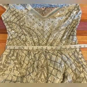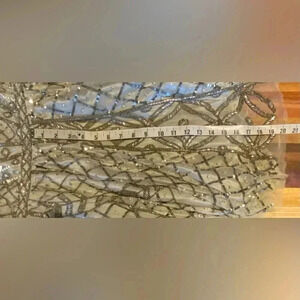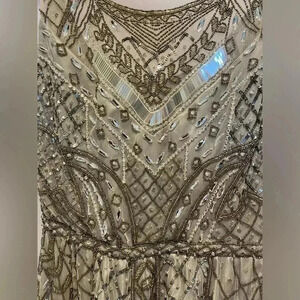Gorgeous dress with intricately patterned beading. NWT, never worn, but there are some threads that need to be trimmed and a few missing embellishments.