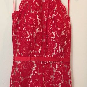The beaded halter neck and allover lace get the party started on this soiree-ready wide leg jumpsuit.