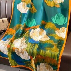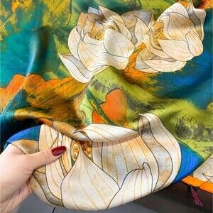 Lotus flower silky scarf shawl wrap head cover mask floral Accessory