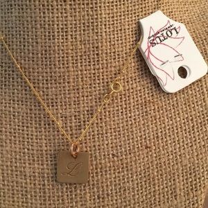 Lotus gold filled script initial “L” on a delicate chain with little balls. Lol