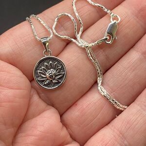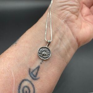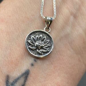 Lotus Flower Sterling Silver Disc Pendant Necklace
