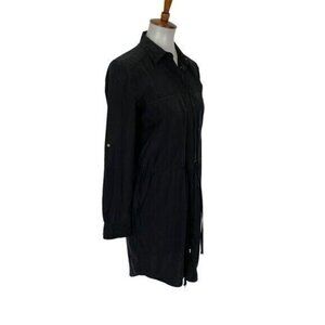 Lou And Grey Gray Collared Button Front Drawstring Dress XS