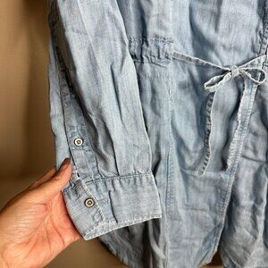 Lou And Grey Lyocell Chambray Button Up Dress Sm Oversized Boho Coastal Utility