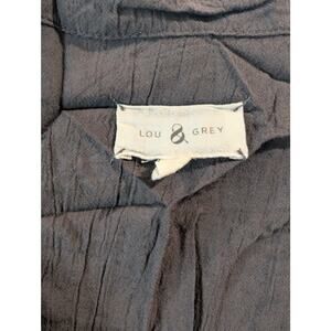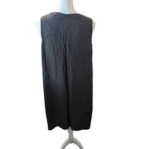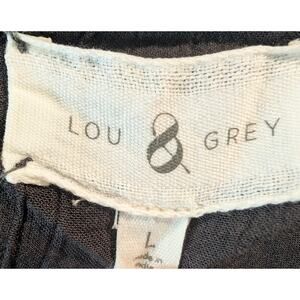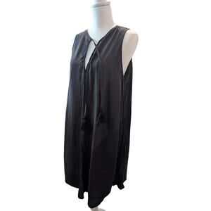Lou & Grey women's black sleeveless dress in size L. Made from 100% rayon, this lightweight, flowy dress features a crinkle texture, deep V-neck with tassel tie detail, and a relaxed fit. Perfect for casual wear, summer outings, or layering over swimwear as a cover-up.