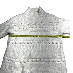 Great condition sweater from Lou & Gray! Neutral ivory in various patterns of knit throughout. Long sleeve, mock neck, and tunic length. Ribbed at neck, cuffs, and hem. No rips, stains, or tears. No cosmetic damage.