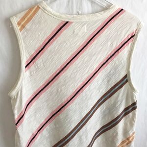 Lou & Grey 100% Cotton Striped High Low Hem Sleeveless Tank L Round Neck Casual
