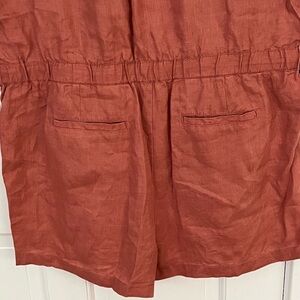 Lou & Grey 100% Linen Short Sleeve Romper Button Up Tie Cinch Waist Terracotta L
