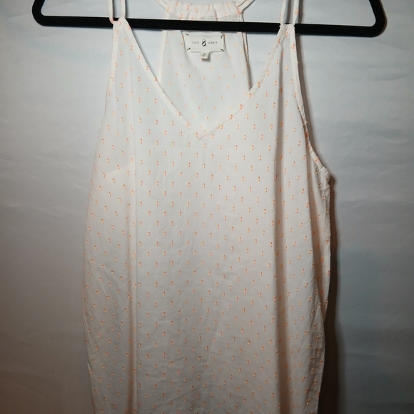 Chic cream camisole with orange pattern. Ideal for layering. Soft and breathable fabric.