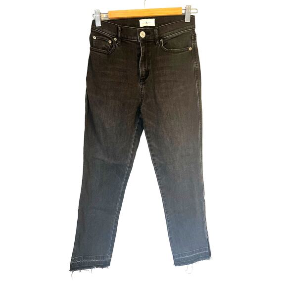 Lou & Grey Black Gray Wash High Waist Straight Cropped Undone Hem Jeans sz. 26