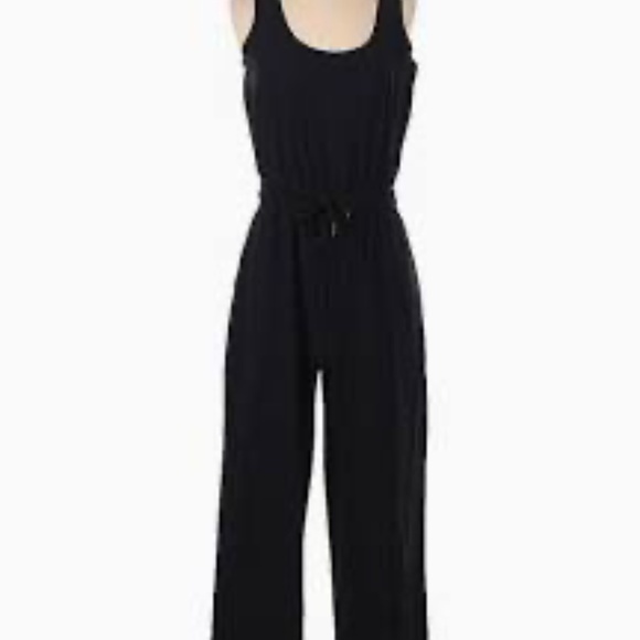 This chic black jumpsuit by Lou & Grey is perfect for casual and work settings. Featuring a scoop neckline, it offers a comfortable and stylish fit. Breathable material. Fits like a small.