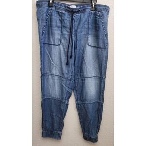 Lou & Grey Blue Chambray Drawstring Waist Ankle Pants Large Elastic Cuffed Hem