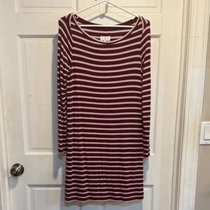 Lou & Grey Burgundy and Pink Striped Long Sleeve Dress