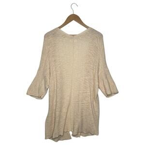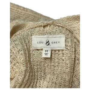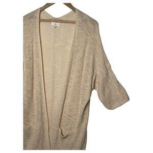 Lou Grey Cardigan Sweater Womens M Open Knit Pockets Long Line Duster Ivory