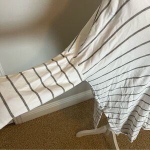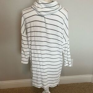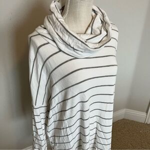 Lou & Grey Cowl Neck Tunic Size Medium. White top with grey stripes. Light wear throughout. Very cozy!