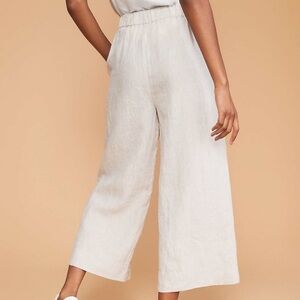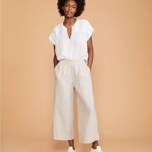 Lou & Grey Loft Wide Leg 100% Linen Pants Beige Pull on Flowy Womens Large ankle cropped
