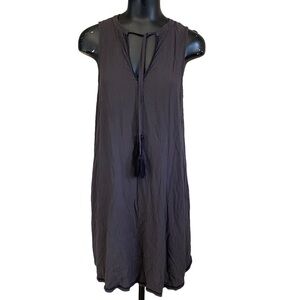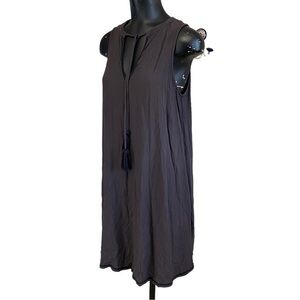 Lou & Grey Dark Gray Aline Dress with tassel trimmed neck ties at center front, V-neck.