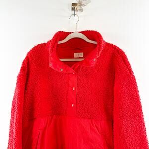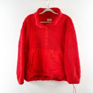 Lou & Grey Fleece Pullover 1/2 Snap Button Coat Jacket Red Large