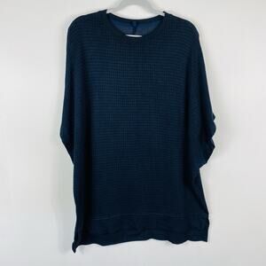 Lou & Grey For LOFT Size Large XL Plaid Ponte Knit Dolman Sleeve Top Navy Blue