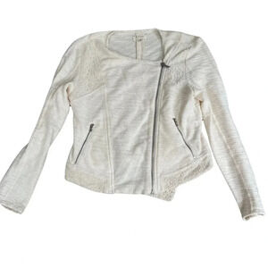 Lou & Grey Hint of Lace Moto Jacket Medium White Ivory