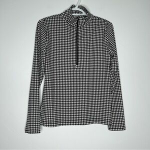 Lou & Grey Houndstooth Half Zip Pullover Athleisure Top Size Small Black White