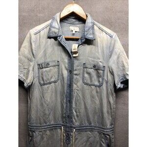 Lou & Grey Jumpsuit Size Large Denim Chambray Button Up Pockets Short Sleeves New with Defect the shoulder looks a little discolored
