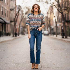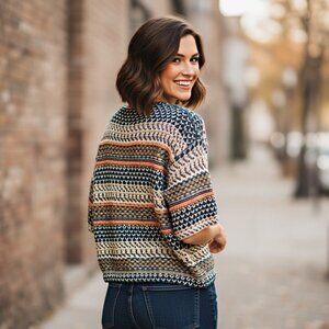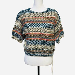 Lou & Grey Knit Crochet Cropped Sweater Top Multicolor Boho Drawstring Oversized
