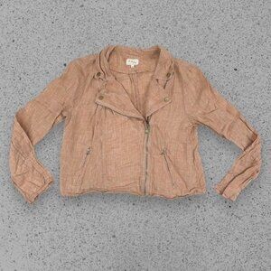 Lou & Grey LARGE Apricot Linen Lightweight Asymmetrical Zip Motorcycle Jacket