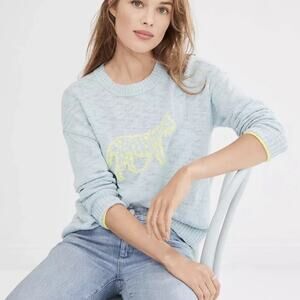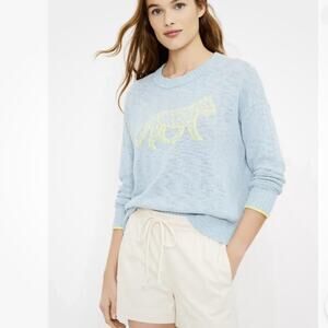 Lou & Grey Leopard Beachy Blue Sweater Summer Vacation Knit Preppy Beach Coastal