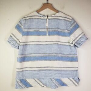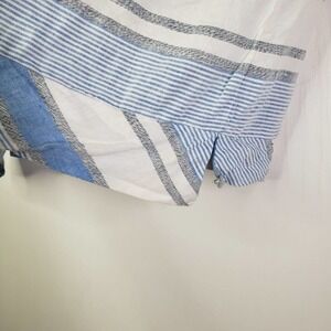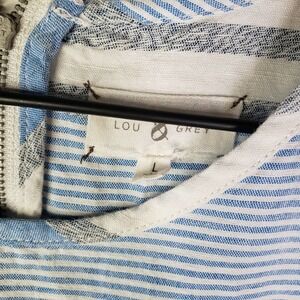 Lou & Grey Linen Blend Boxy Shirt L Blue Ivory Grey Stripe Short Sleeve
