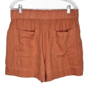 Lou & Grey Linen Pull On Shorts Orange Pockets NWT