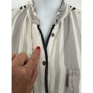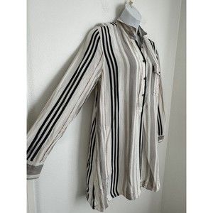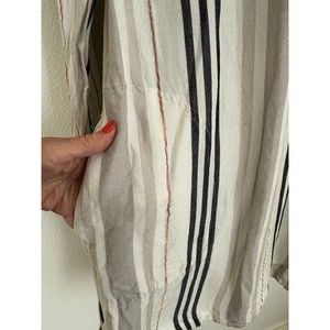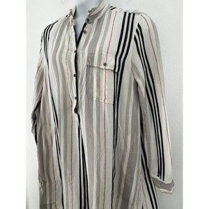 Lou & Grey Linen Shirt Dress Large Button Lagenlook Long Sleeve Tan Striped