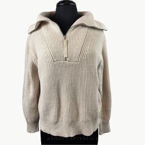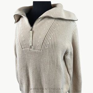 Lou & Grey Loft Women’s Zip Neck Knit 100% Cotton Sweater Sz Medium, Ivory