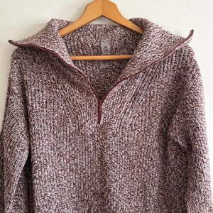 Lou & Grey Loft brown/white Ribbed Half Zip Sweater size Medium