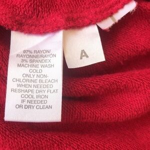 Very soft, 97% rayon 3% spandex. Size XS. See photos for measurements to ensure fit. Preowned condition.