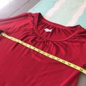 Very soft, 97% rayon 3% spandex. Size XS. See photos for measurements to ensure fit. Preowned condition.