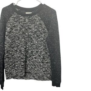 Cozy and stylish, this Lou & Grey sweater is the perfect addition to your wardrobe. Featuring a marled black and white knit pattern with contrasting raglan sleeves, this piece offers a relaxed fit and a comfortable feel. Ideal for casual outings or lounging at home, pair it with your favorite jeans or leggings for a laid-back look.