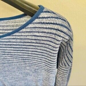 Lou & Grey Navy Striped Lightweight Waffle Knit Pullover in Size Medium. Longer length.