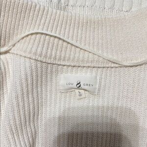 Lou & Grey Open Front Cardigan Sweater white/Navy Sz L NWOT