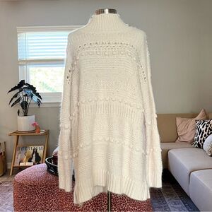 Lou & Grey Oversized Mock Neck Knit Sweater Long White Cream XL