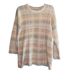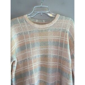 Lou & Grey Plaid Wool Alpaca Blend Sweater Beige Pink Neutral Academia Tunic Medium soft cozy