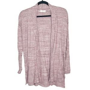 This casual and versatile open front cardigan is by the loungewear line Lou & Grey from Loft. It is a heathered light purple color with slight tones of pink and white. Deep side slits on the hem, long sleeves, longer length. Perfect layering or transition sweater for Fall that you'll wear all the time. In good condition with minimal signs of wear. Measurements available upon request.