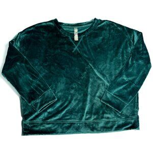 Lou & Grey Ribbed Velour Sweatshirt Forest Green Stretchy Crewneck Size XL