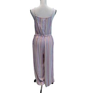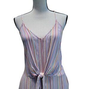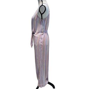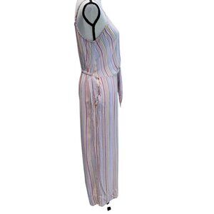Lou & Grey Size M Rainbow Stripe Halter Jumpsuit V-Neck, Pockets, Tie Waist
