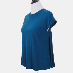 Lou & Grey Size XS Cotton Jersey Knit Tee Cap Sleeve Crew Neck Blue
