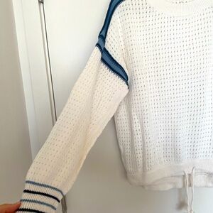Never worn! Lou & Grey blue and white lightweight sweater with drawstring waist. Sporty and sweet, this sweater is perfect for casual outings. Size Large. Pristine condition.