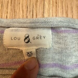 Lightweight 3/4 sleeve gray top with light purple stripes from Lou & Grey XS. Very good condition.