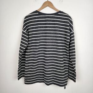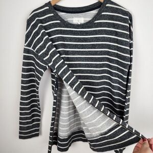 Lou & Grey Striped Sweatshirt Top Side Zip Charcoal White Cotton Blend Knit Pullover Top Long sleeve T-shirt